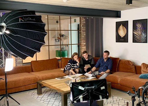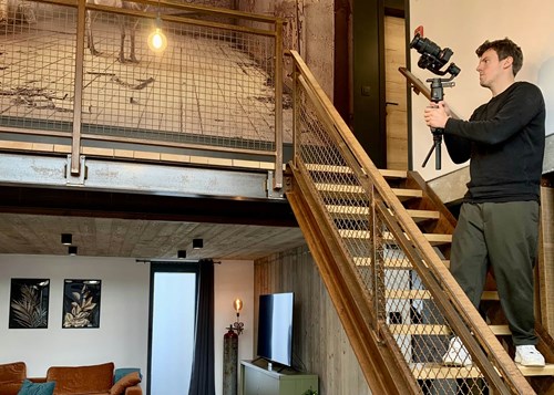 L'équipe de tournage s'imprègne de l'ambiance loft-coutry de la résidence de caractère Industrielle.