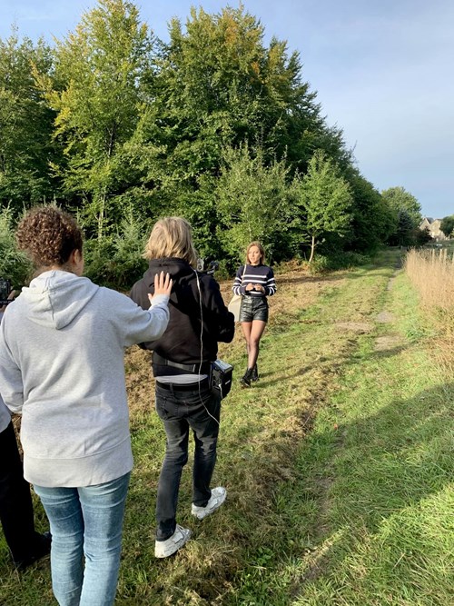 "Et.... Action !" Quelques prises tests sont organisées avec la présentatrice, Fiona De Paoli, dans le chemin de promenade en connexion directe avec le jardin.