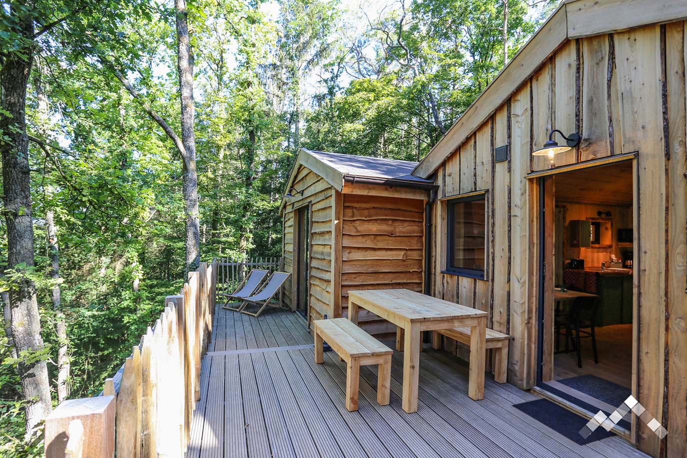 Beeld je in dat je een ladder moet beklimmen of een bospad moet bewandelen om je vakantiehuis te bereiken. Dat is genoeg om al direct een avontuurlijke setting te creëren tijdens je verblijf in de Ardennen, tot groot plezier van niet alleen je kinderen, maar van iedere avonturier, ongeacht de leeftijd. Verder zorgt de blokhut, naast het uitzicht op een groene omgeving, voor een Robinson Crusoe-gevoel dankzij een houten balkon, een hangmat, rustiek meubilair en nog veel meer. Laat het avontuur beginnen.